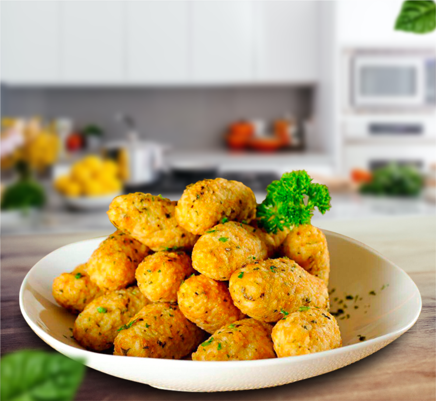 Modele pequenos bolinhos com as mãos e aqueça o óleo em uma frigideira. Frite os bolinhos até que fiquem dourados dos dois lados.